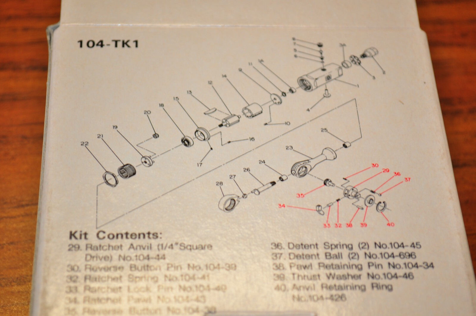 104-TK1 Ratchet head Kit 1/4″. Used On Ingersoll-Rand Model 104.