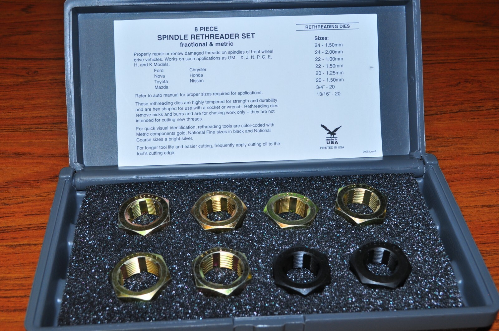 – Properly repair or renew damaged threads on spindles of front wheel drive vehicles