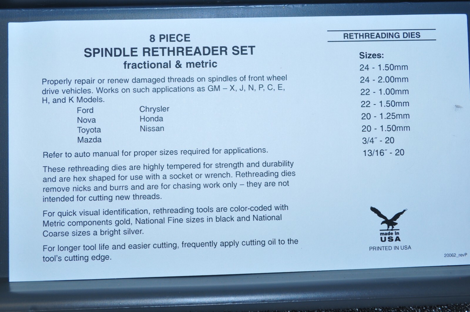 8-PIECE FRACTIONAL AND METRIC SPINDLE RETHREADER SET LANG 2579