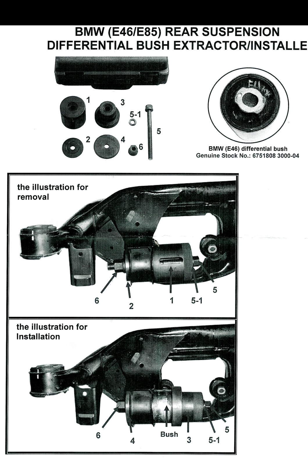 BMW REAR SUSPENSION DIFFERENTIAL BUSHING REMOVAL,INSTALLER E46,E85 KTCA1153  or BMW2081