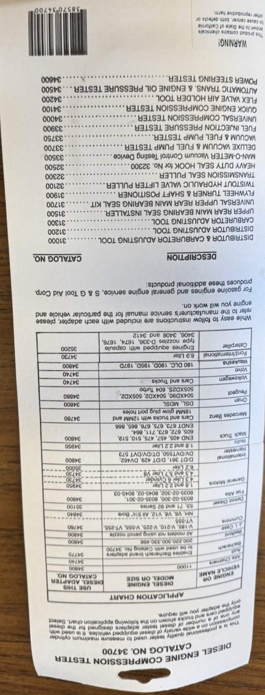 Diesel Engine Compression Test Kit SG Tool Aid 34700
