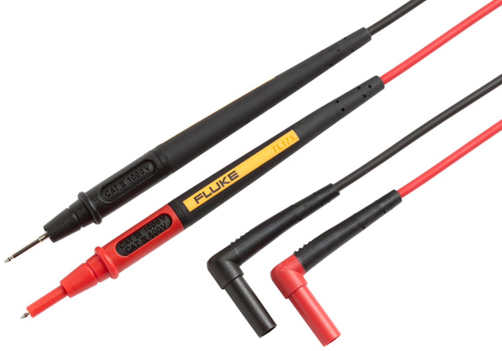 The Fluke TL175 TwistGuard™ Test Leads offer adjustable length test tips for use in different measurement environments. The TwistGuard™ adjustable tips enhance safety and versatility length. The WearGuard™ indicator shows damage to leads and provides heavy duty strain relief to withstand over 30,000 bends.