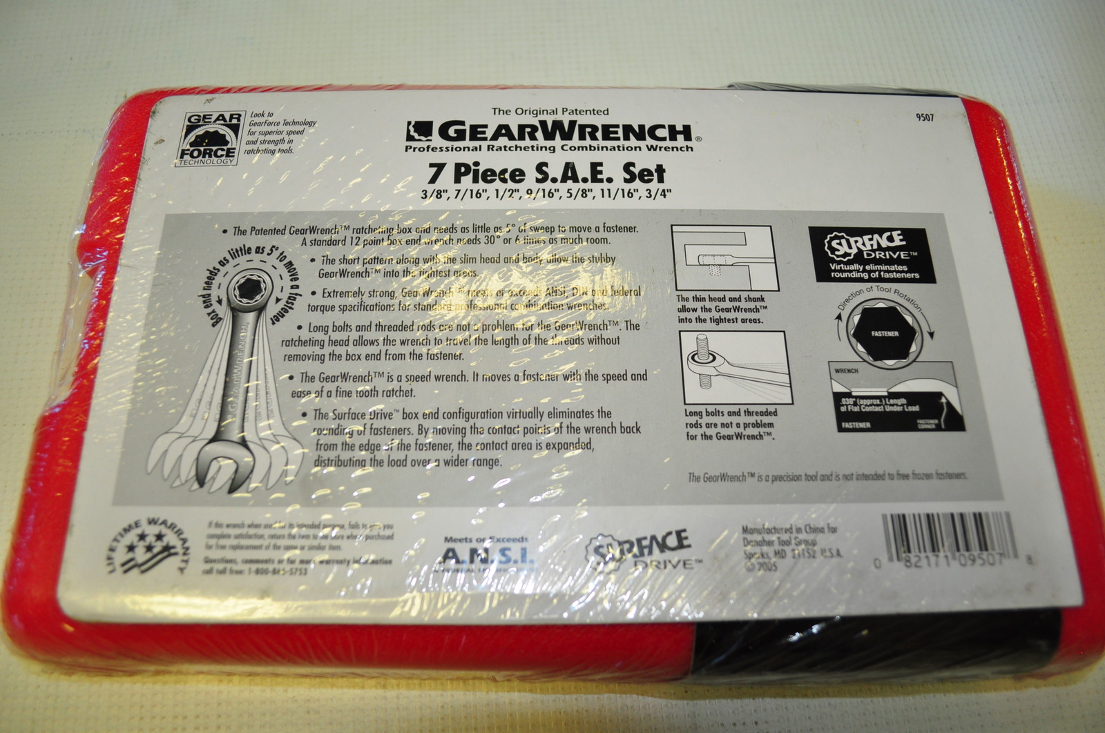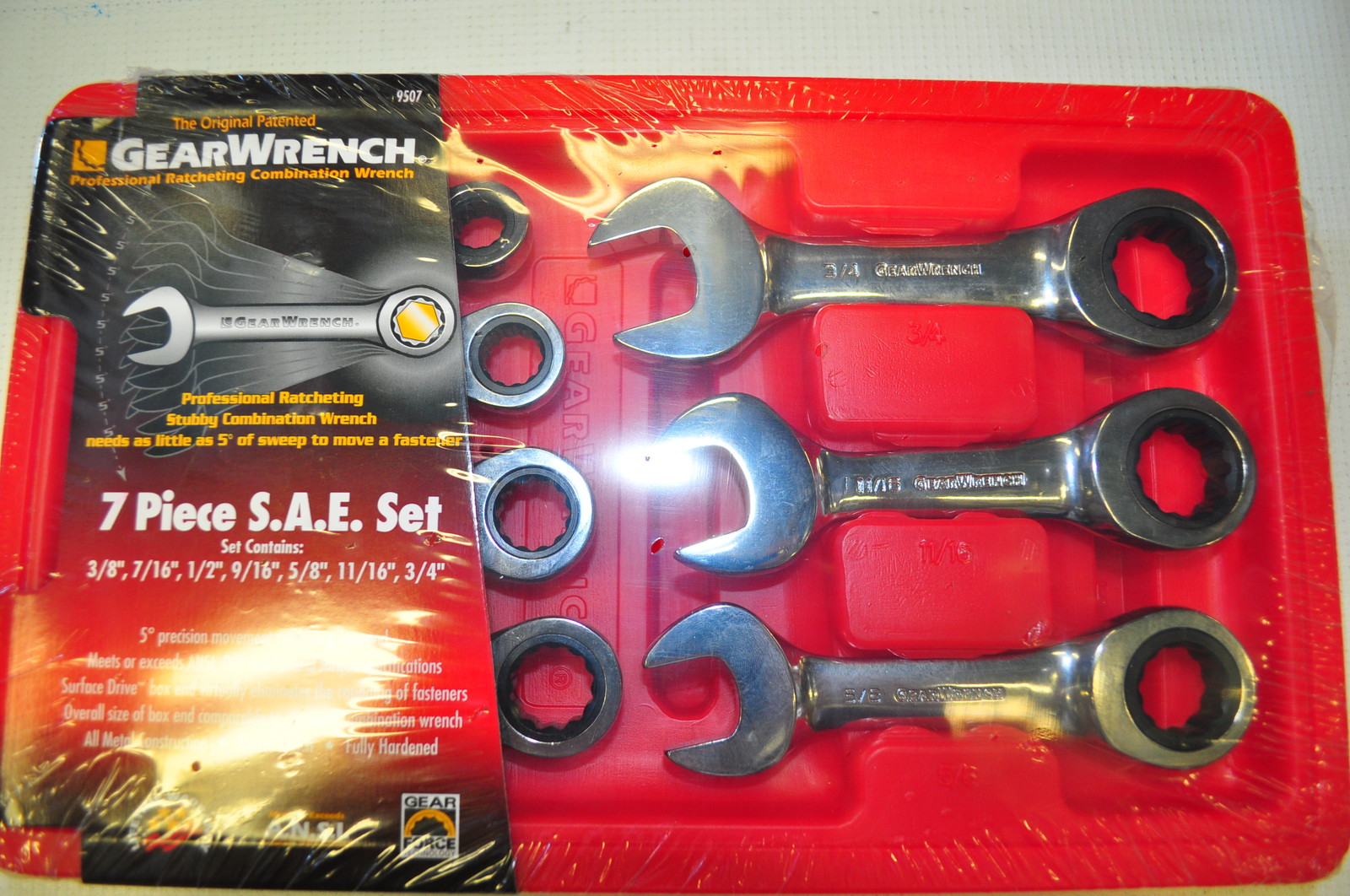 - Includes: 3/8″, 7/16″, 1/2″, 9/16″, 5/8″, 11/16″ and 3/4″ GearWrenches.