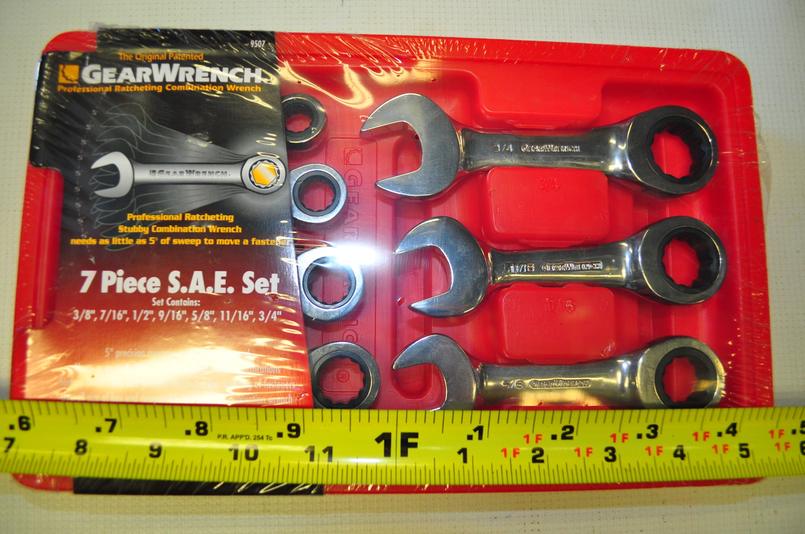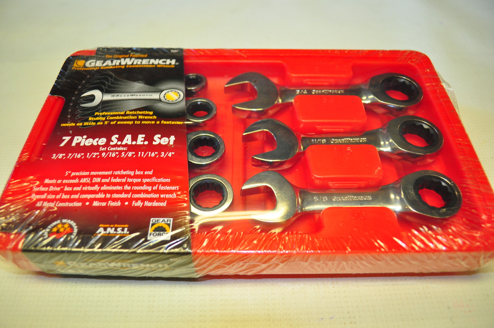GearWrench 9507 7 Piece SAE Stubby Combination Ratcheting Wrench Set