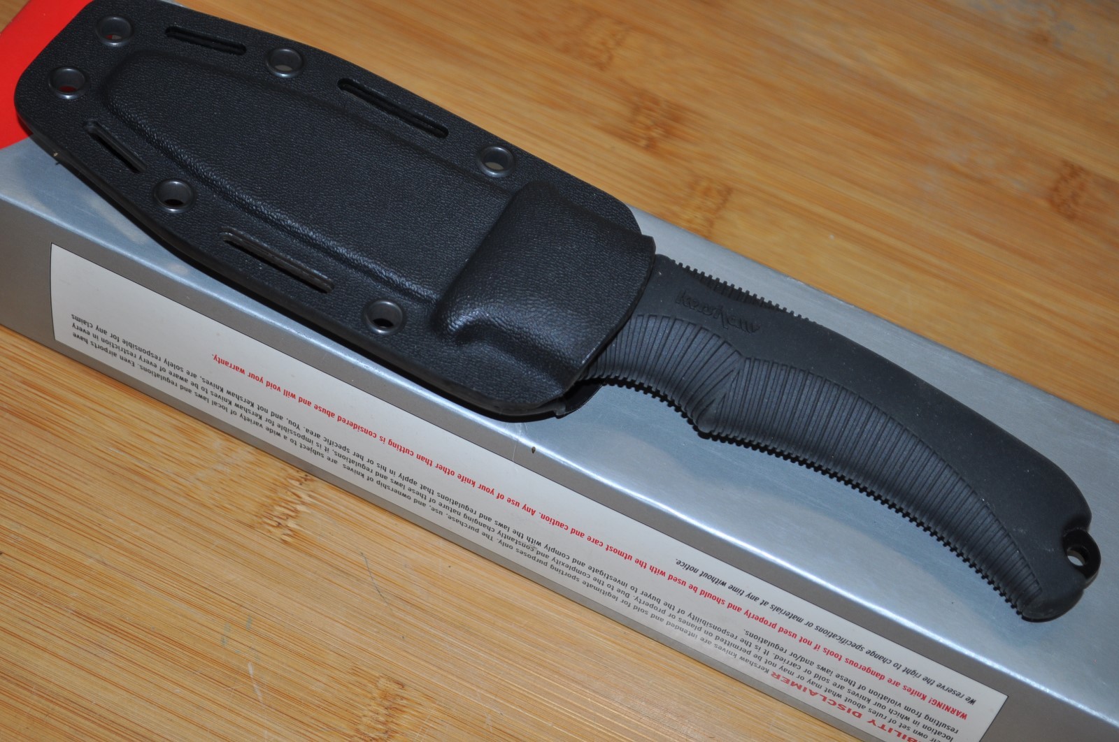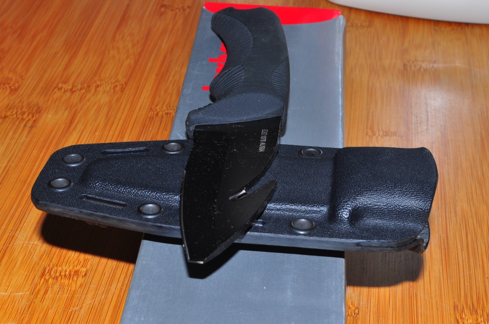 The Responder is built to handle everything from extreme sports to rescue situations. The Responder features a fixed blade with full-tang construction strength and a non-slip, double injection-molded Santoprene® handle for a secure grip in any situation from wet and muddy to cold and icy. The highly visible neon-handled Responder also features a glass breaker tip. In an emergency, a sharp blow with the carbide tip can crack windshield glass, enabling trapped accident victims to escape. The partially serrated blade and cutting hook zip through most material with ease including line, webbing, and seat belts but the tip is rounded for safety. The multi-function Kydex® sheath offers multiple carry options and has both cord eyelets and strap slots.