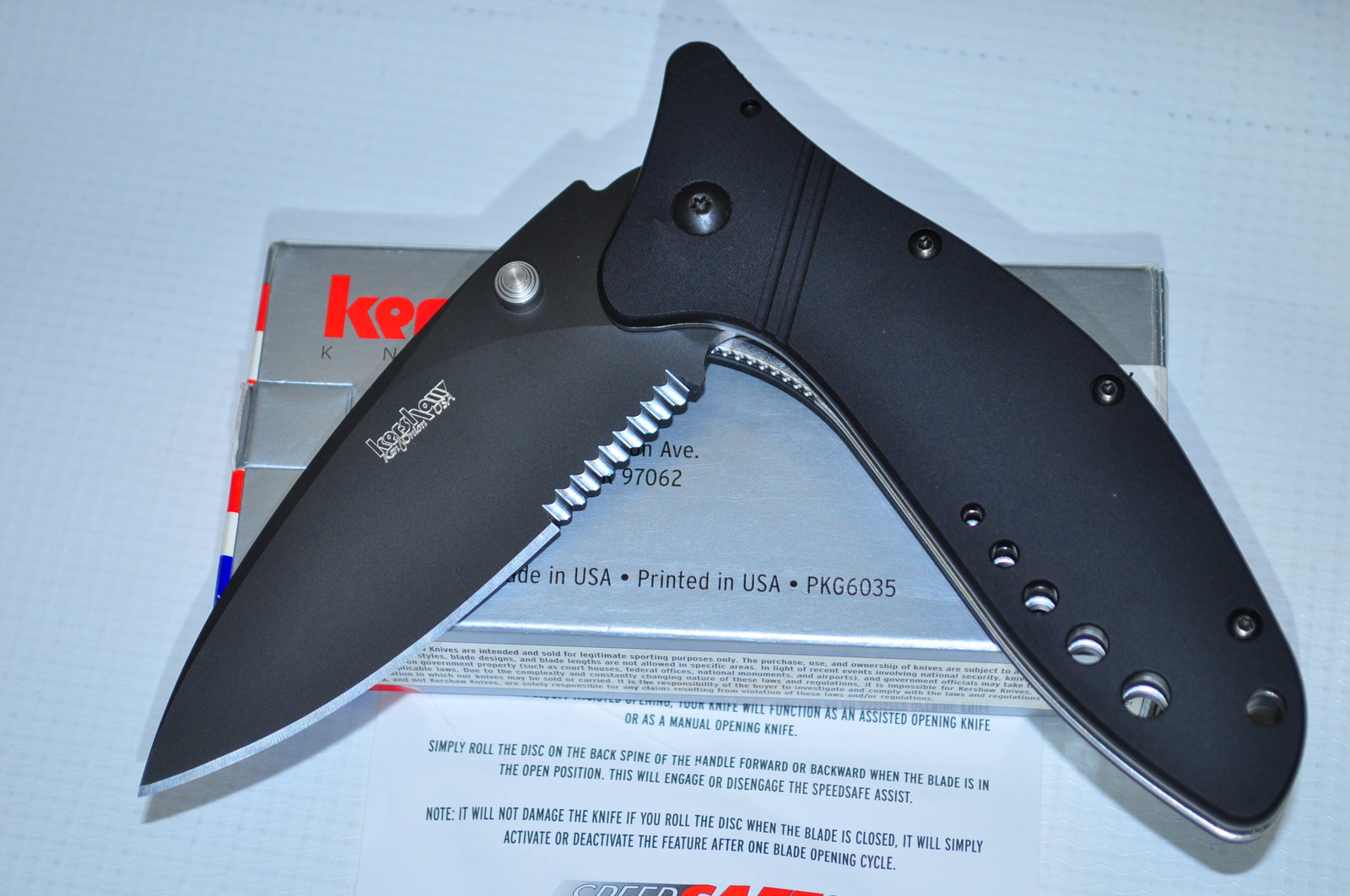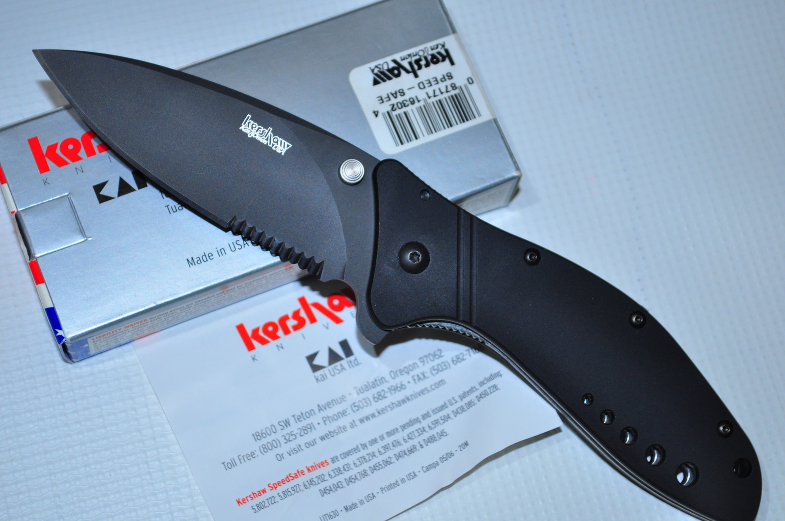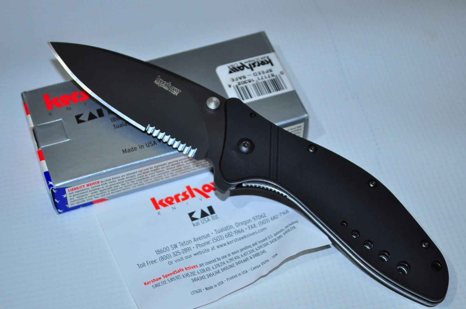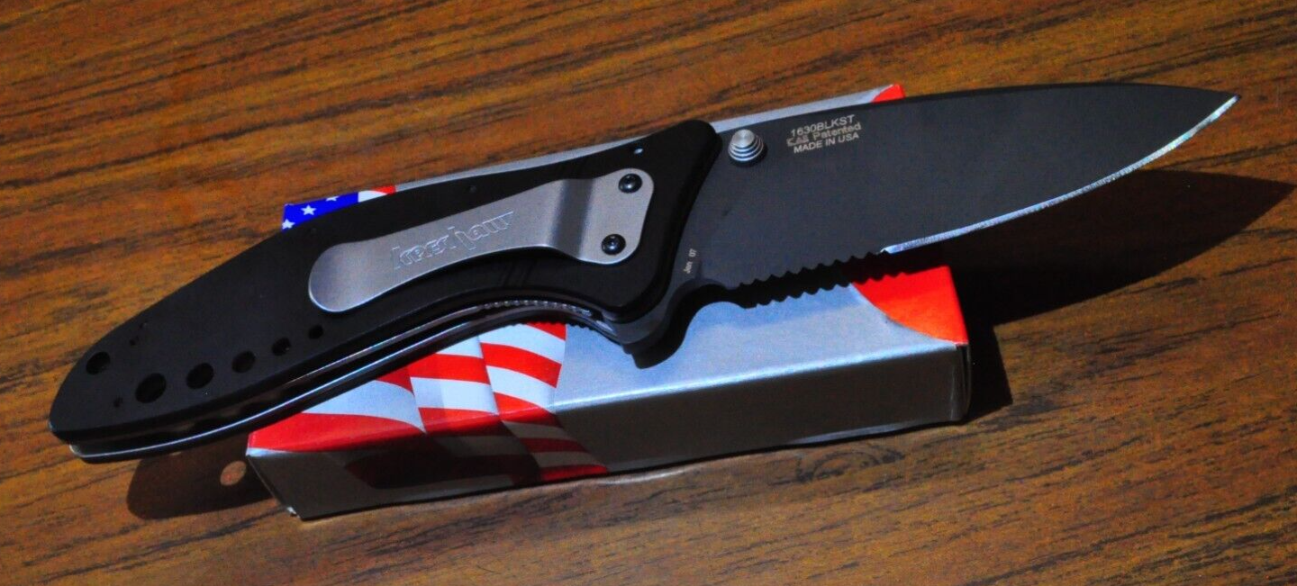 Kershaw 1630BLKST Cyclone, Black Aluminum Handle, Black Blade, Serrated ComboEdge Early Release date on ” Jun 07″ Stamped on the blade