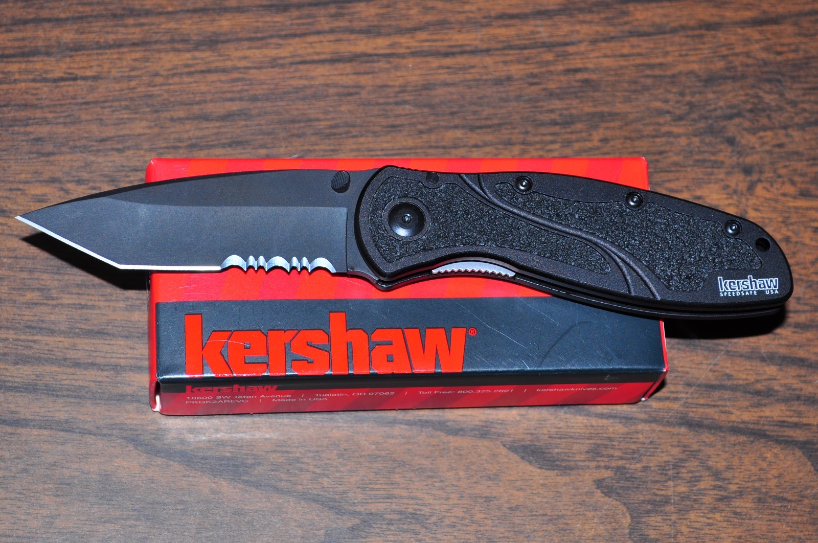 Kershaw Knives Tactical Blur knife by Ken Onion Design – For top performance and attention-getting style. Tactical Blurs are equipped with the Kershaw SpeedSafe Assisted opening feature for smooth, one-handed opening. The anodized T6 6061 Aluminum handles are durable and lightweight. For extra traction and a secure grip, the handles are outfitted with Trac-Tec inserts. The rough Trac-Tec material provides a non-slip grip even in wet and slippery conditions. Ideal for extreme or everyday situations, the Kershaw Blur Tactical knife series offers power and performance with a Black Tungsten DLC Coated Tanto blade with partially serrated edge , The Blur Tactical Sandvik 13C26 Stainless steel blade lends itself to toughness and