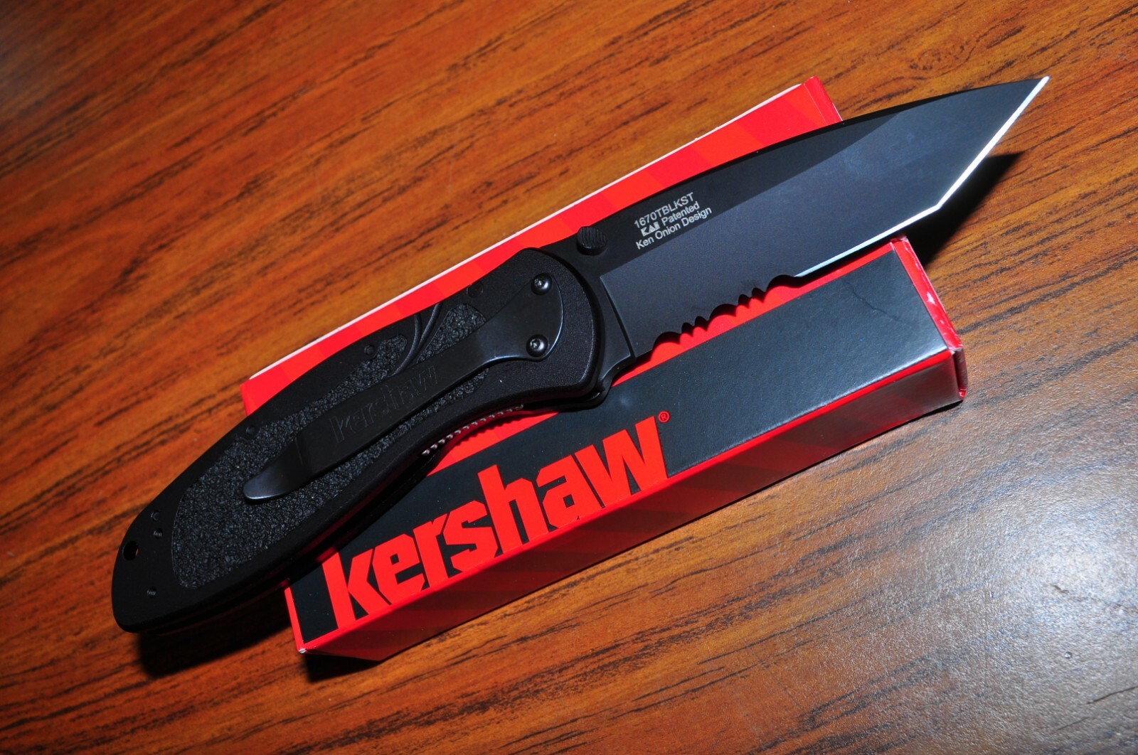 1670TBLKST: Kershaw Blur Tactical Knife – Black DLC Tanto Combo Edge (Assisted)