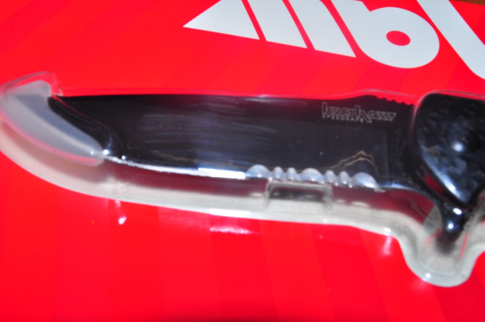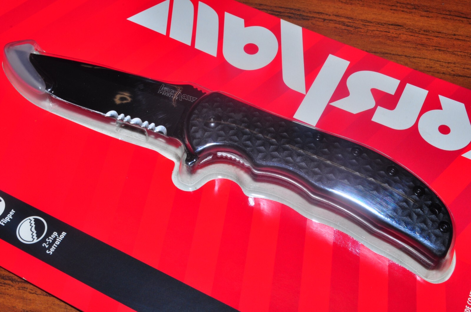 - 8Cr13MoV blade steel offers edge-holding capability, strength, and hardness; black-oxide coating adds blade protection; partial serration is ideal for cutting fibrous materials like rope or webbing