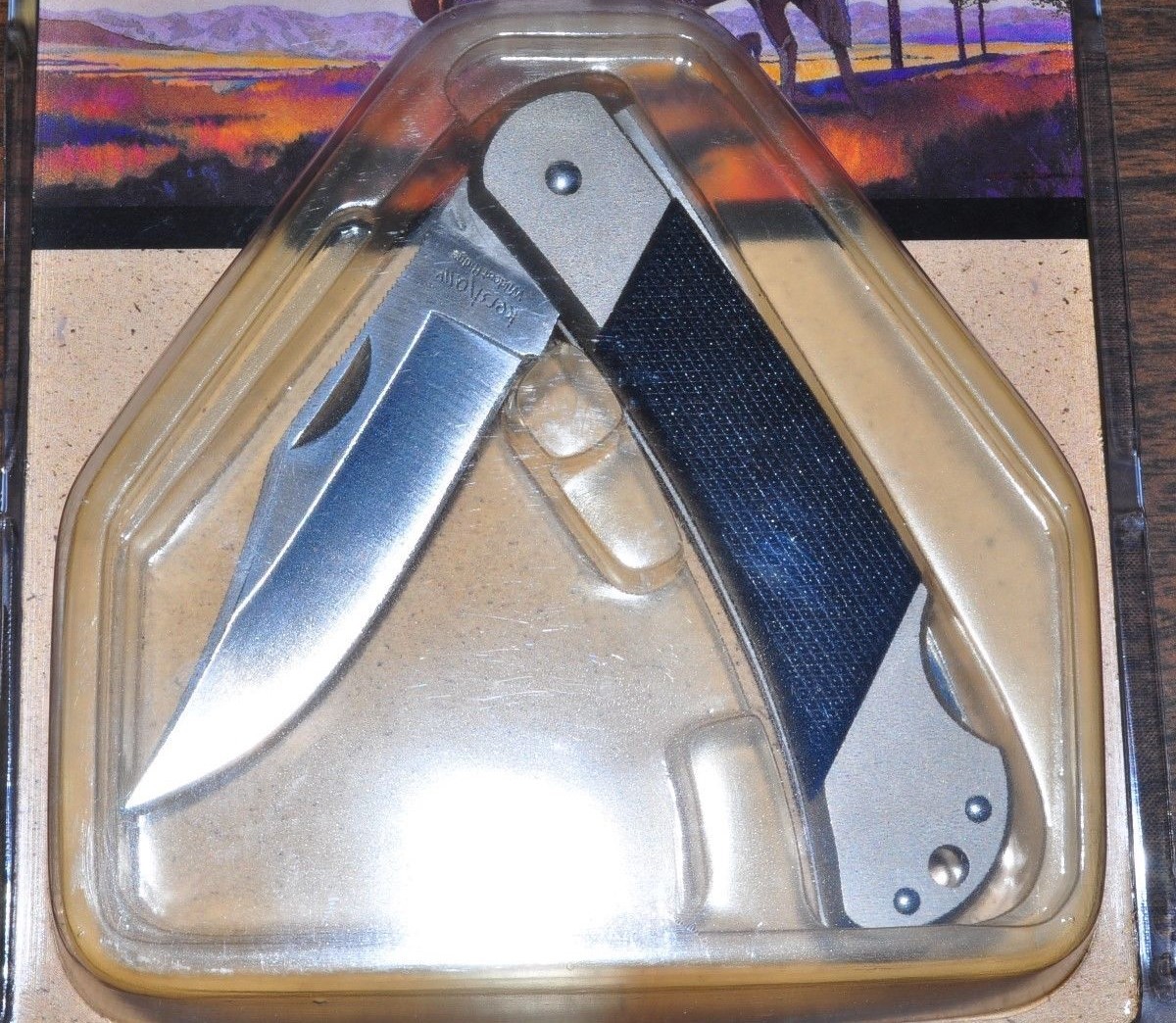 Handle – Matte finish stainless steel bolsters with black crosscut ABS scaling