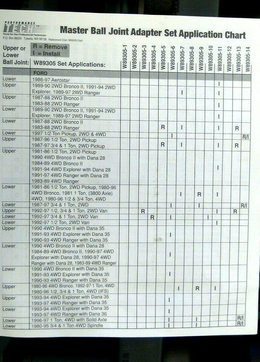 The 14-pc. Master Ball Joint Adapter Set expands the service of the Performance Tech Ball Joint Service Set, made by alloy CR-MO alloy steel