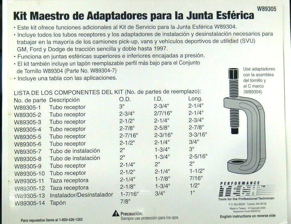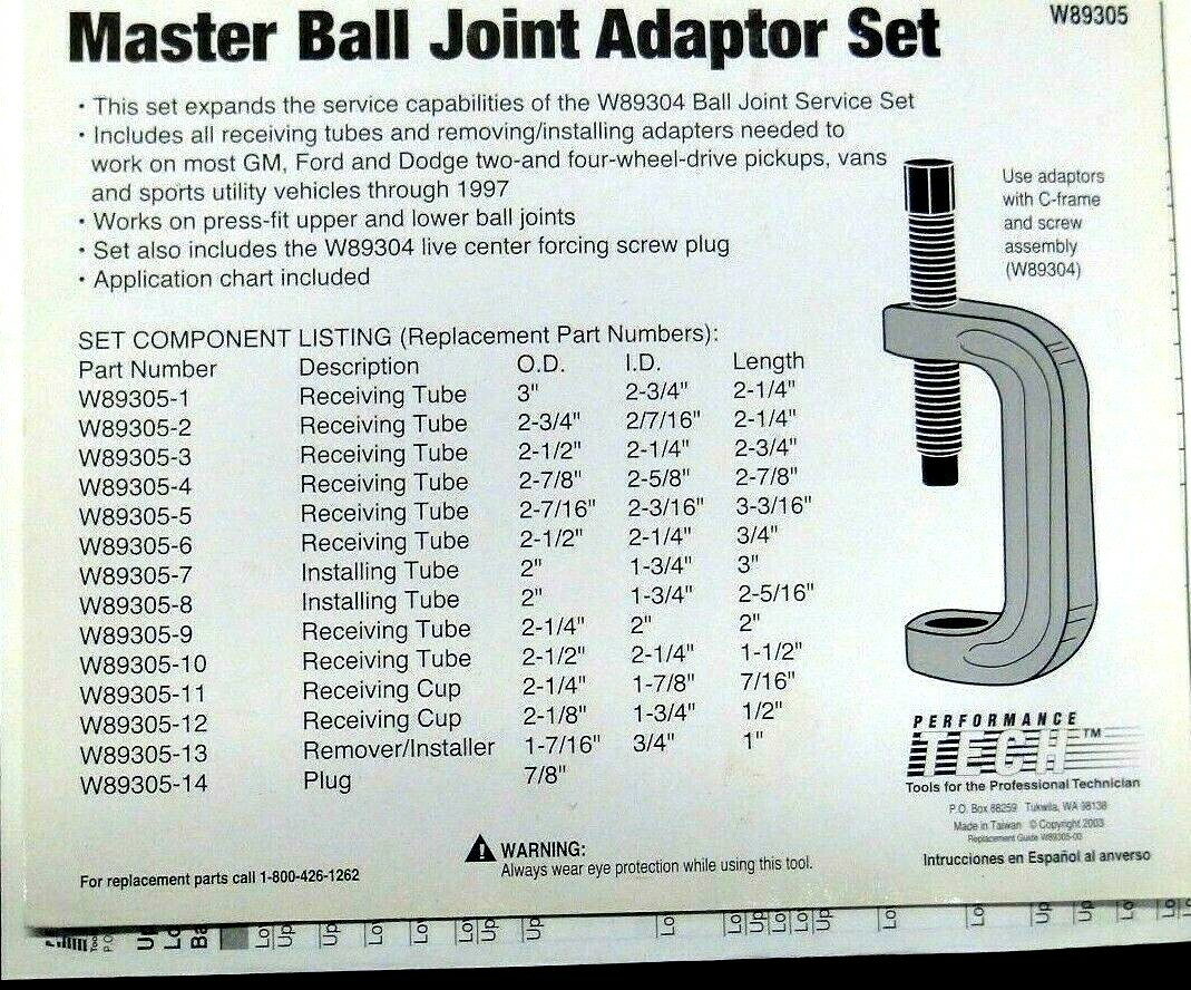 Fits most Ball joint Press (not included) . Adapter Complete set includes all receiving tubes and removing/installing adapters needed to service most GM, Ford and Dodge 2- and 4-wheel drive pickups, vans and SUVs through now. weight: 13.1lbs