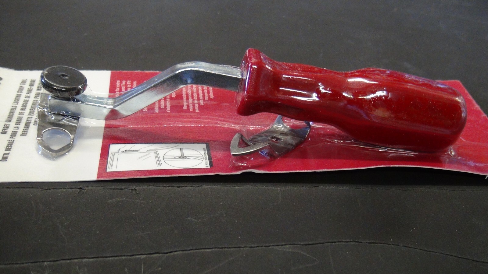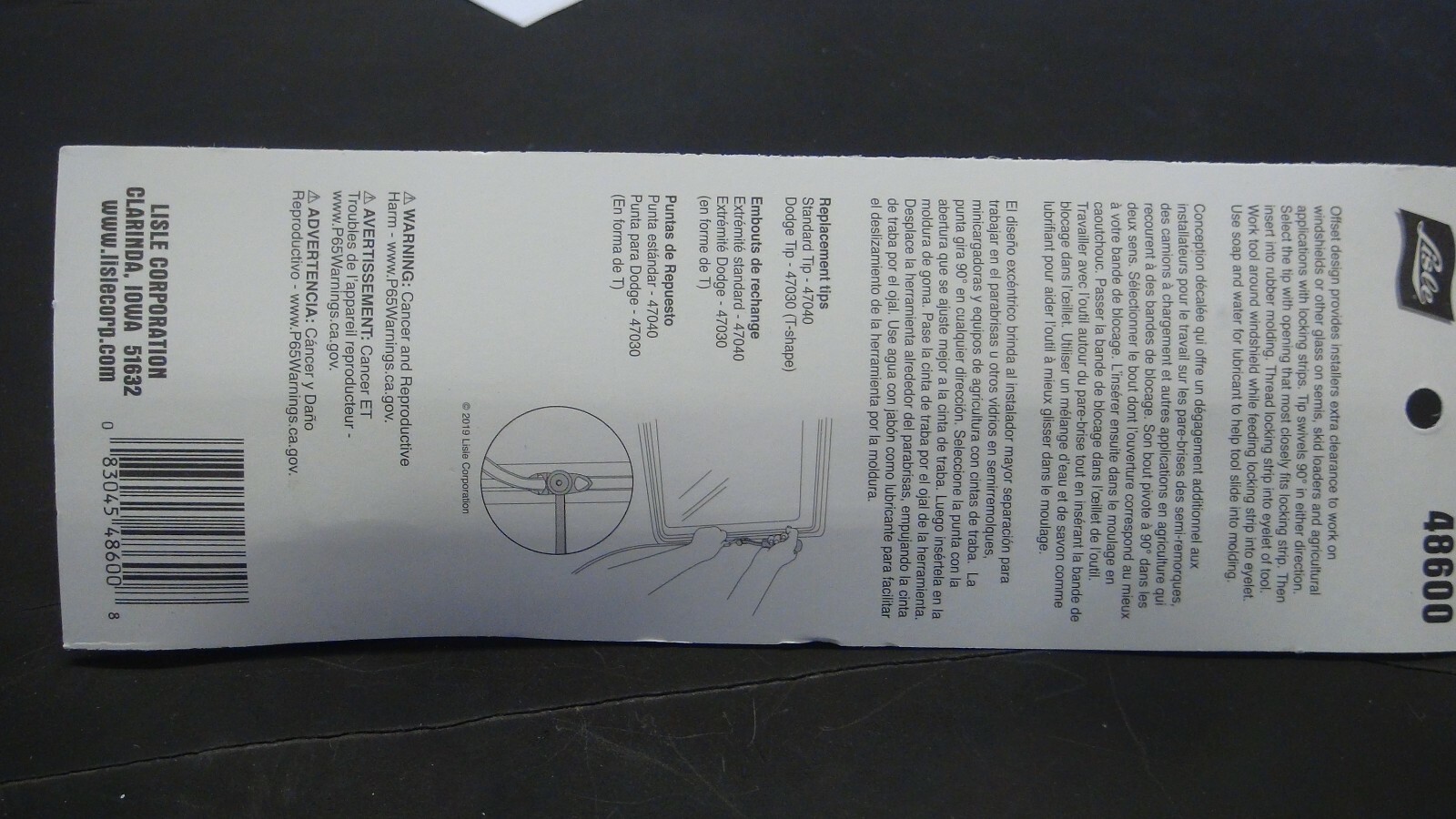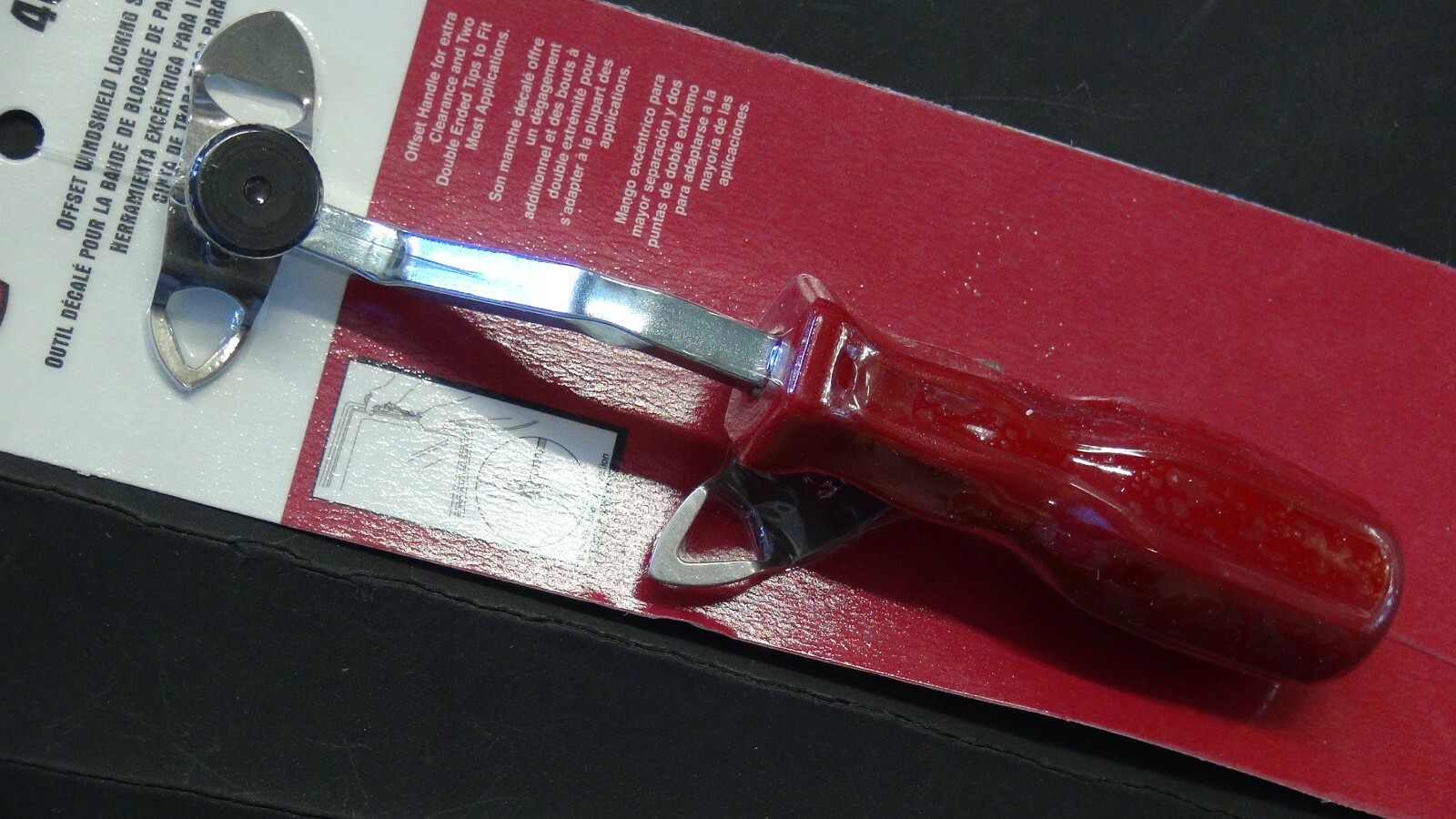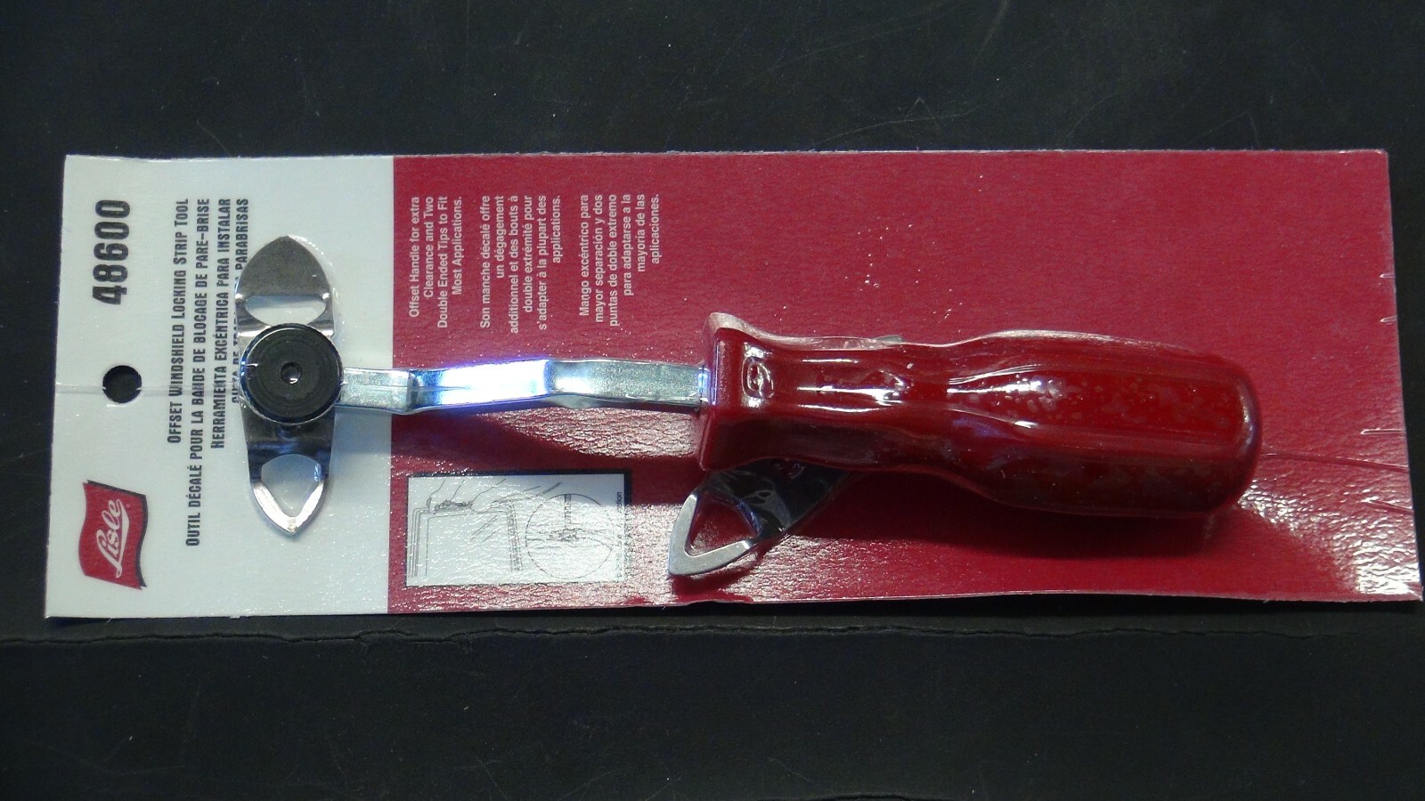 Offset Handle for Extra Clearance and TwoDouble Ended Tips to Fit Most Applications.Offset design provides installers extra clearance to workon windshields or other glass on semis, skid loaders andagricultural applications with locking strips. Tip swivels 90° ineither direction. Select the tip with opening that most closelyfits locking strip.