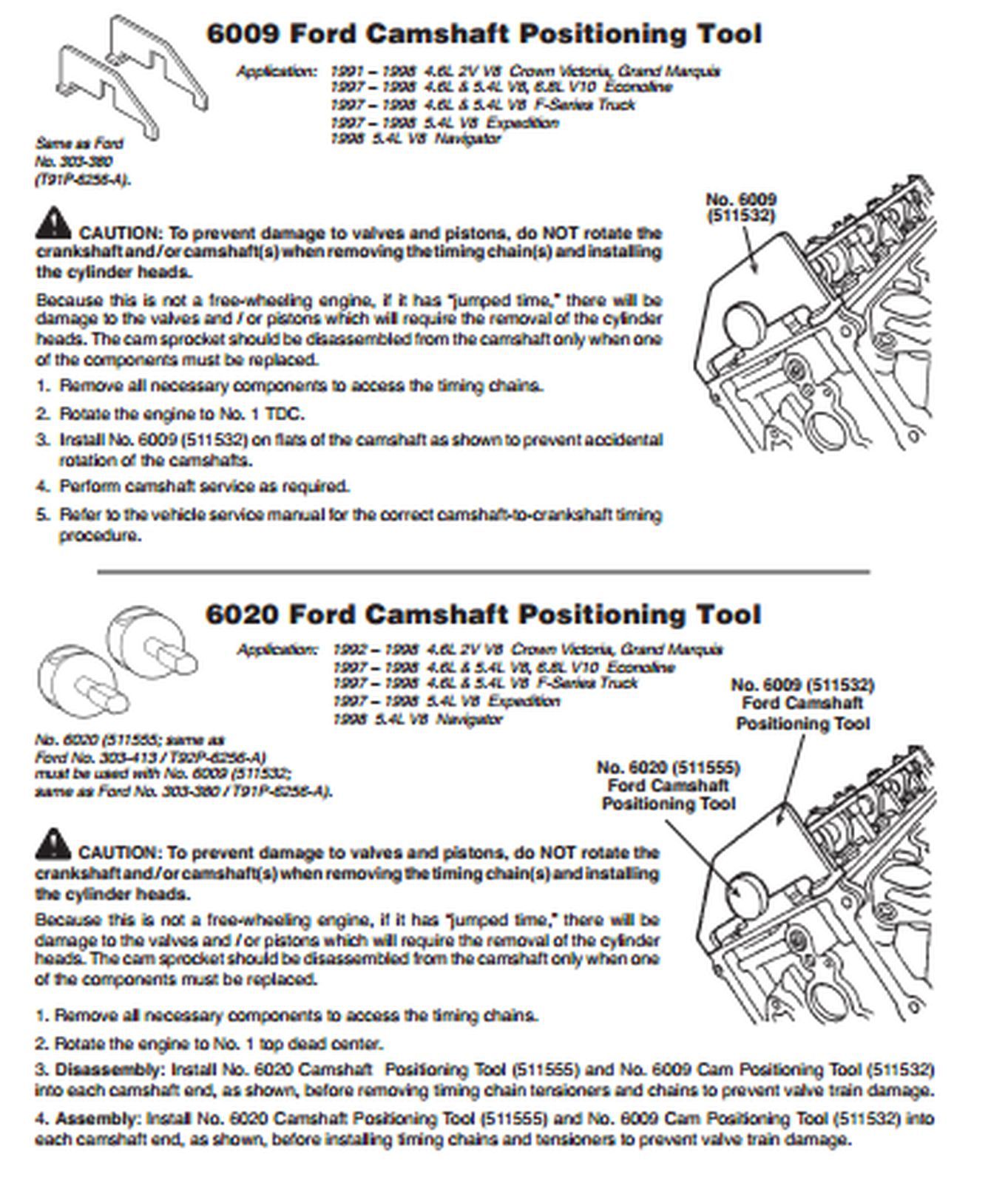 The OTC Ford Cam Tools ensure correct cam timing when servicing timing belts, chains, head gaskets or other valve train repairs.