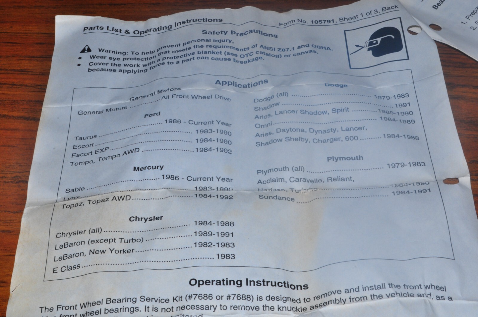 OTC 7686 Front Wheel Bearing Service Kit