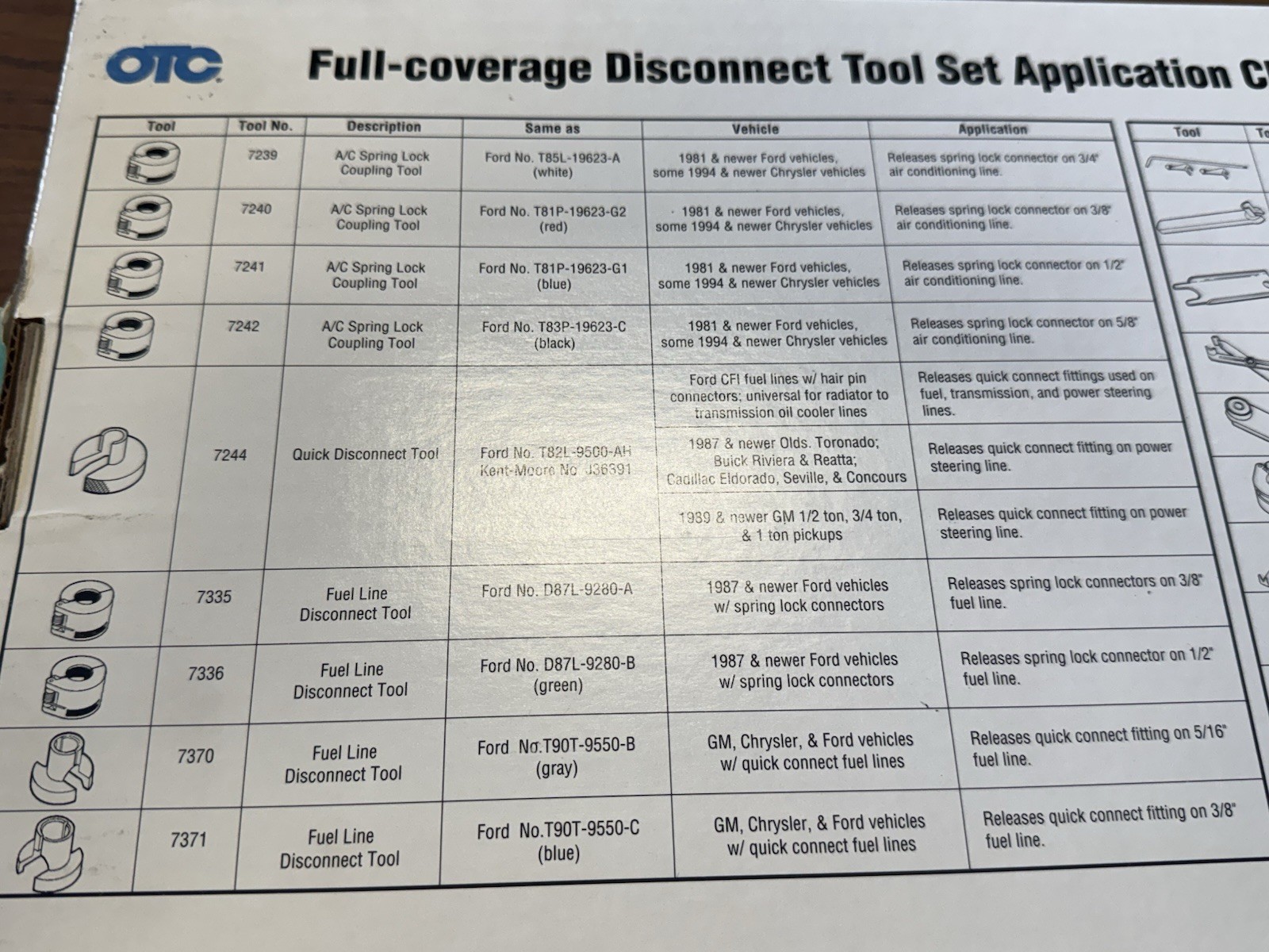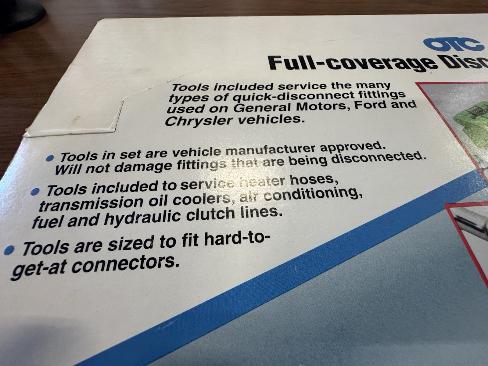 1.SetTools Included service the many types of quick disconnect fittings used on General Motors,Ford and Chrysler vehicle