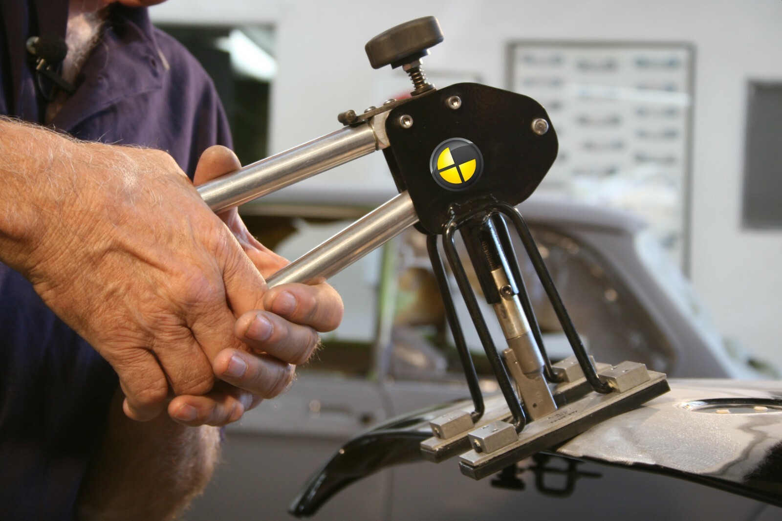 Sometimes in order to relieve this over-hardening and be able to pull the damaged area needs to be heated the allow the metal to release. The panel must always be heated to about 400 degrees while under pull in order for the panel to set in new position. Hence the inclusion of an infrared thermometer and digital temperature set heat gun to heat the panel. A self-locking squeeze puller makes it easier to pull and heat at the same time. This squeeze puller can pull on one or several pins. For heavier pulls a leverage puller and for lighter finesse pulls a single pin hand puller are included.