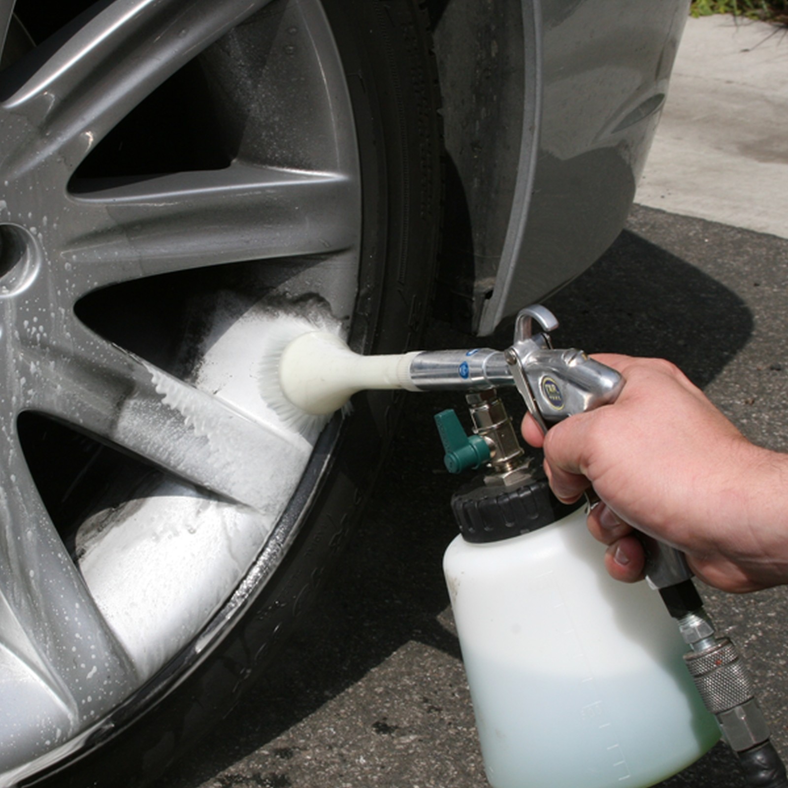 Connects to an air hose. Use in well ventilated areas as cleanser will be vaporized,