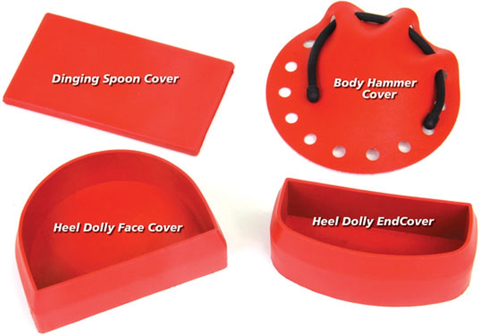 Soft Strike Rubber Dolly Body Covers and the Soft Strike Dinging Spoon Cover are made from Buna rubber for use on a steel heel dolly or a dinging spoon.