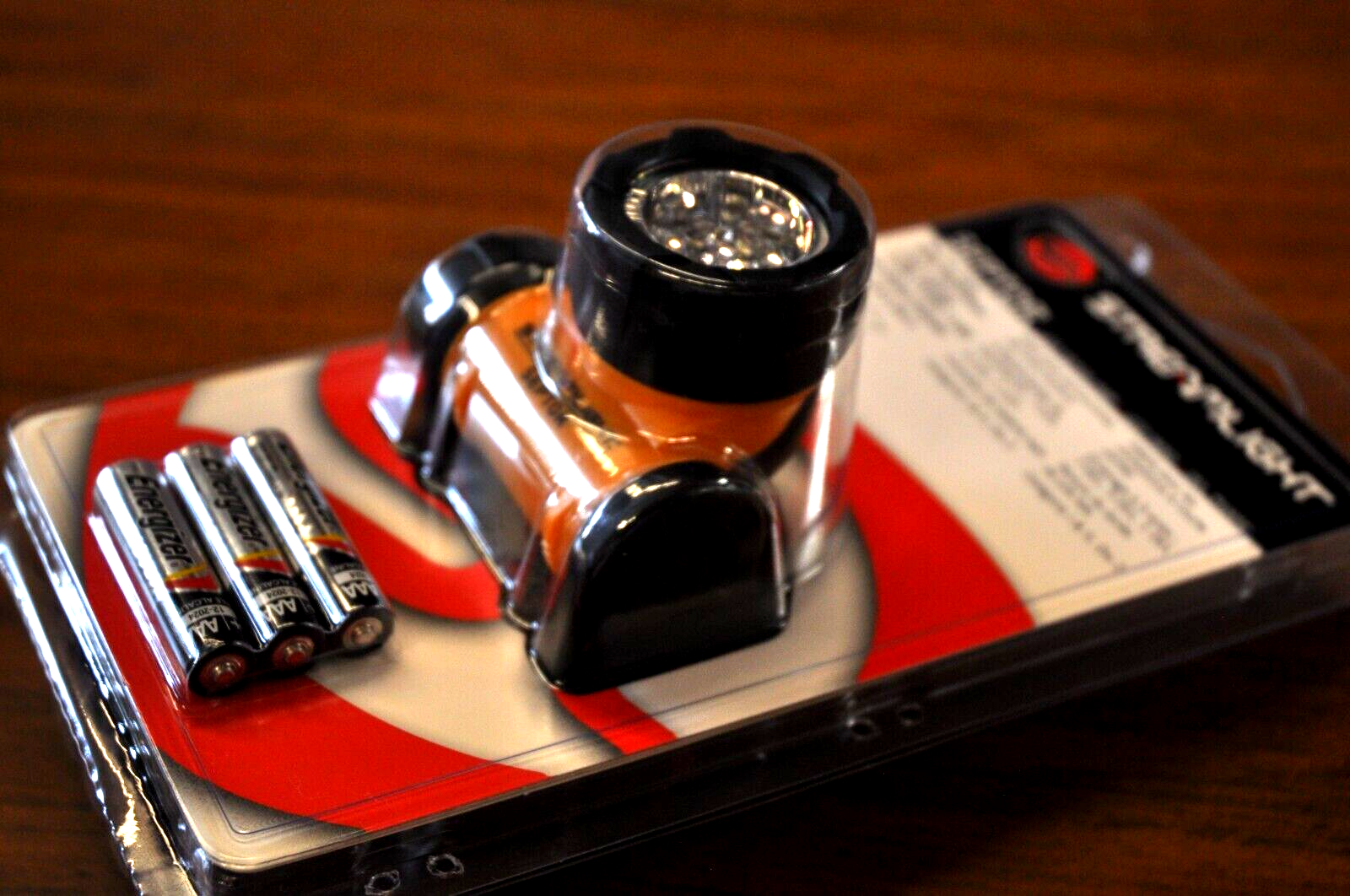 - 7 LEDs for a soft flood light for tasks at arm’s length: 120 lumens, 900 candela peak beam intensity, 3.5 hour run time