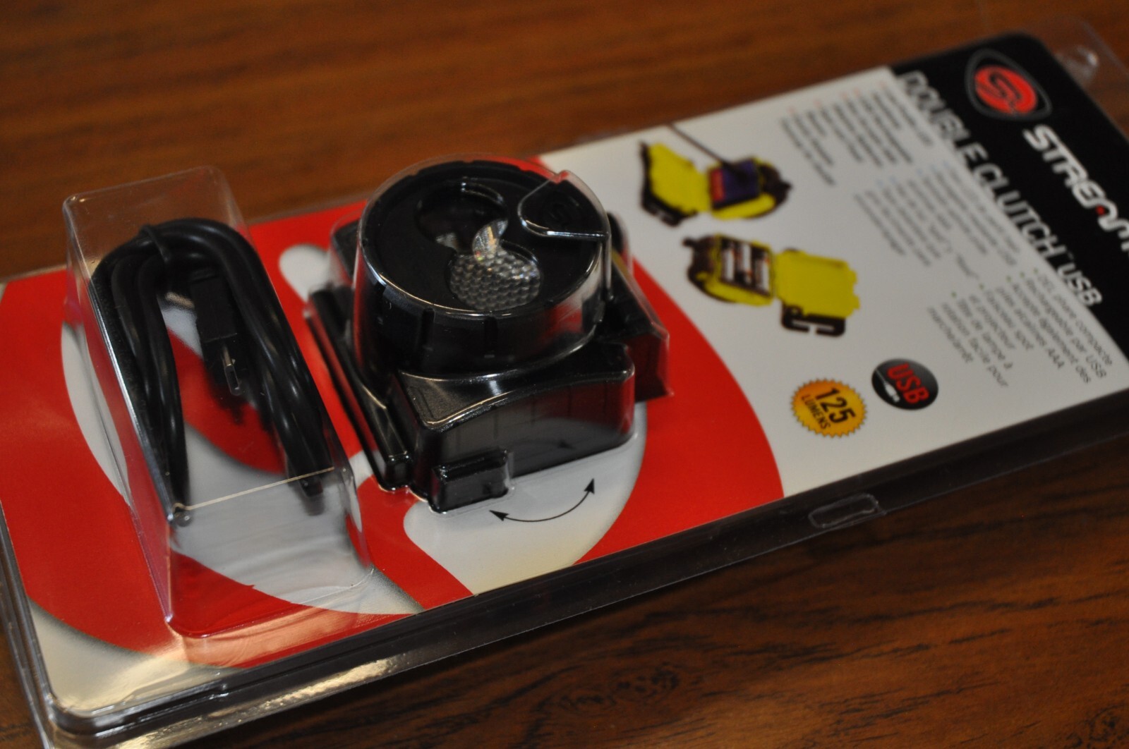 The Lithium Polymer battery charges inside or outside of the headlamp or three AAA sized batteries can be used for disposable power. The Double Clutch USB headlamp has been specifically engineered to maximize run time and minimize weight with a low profile design and an optimized center of gravity providing maximum wearer comfort and stability during use. The headlamp is packaged with an elastic head strap and rubber helmet strap.