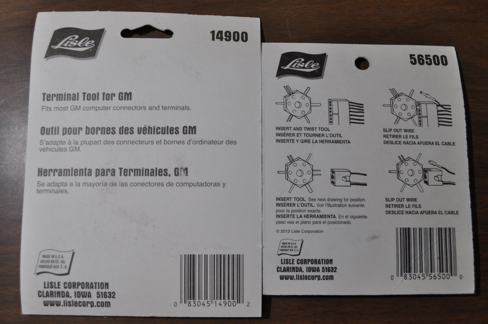 Lisle Wire Terminal Tools are designed to remove wires from terminals without damage to either. 56500 prongs depress the “barbs” on conventional terminals. Tool can also retrieve trouble codes from engine computer on late model GM vehicles.