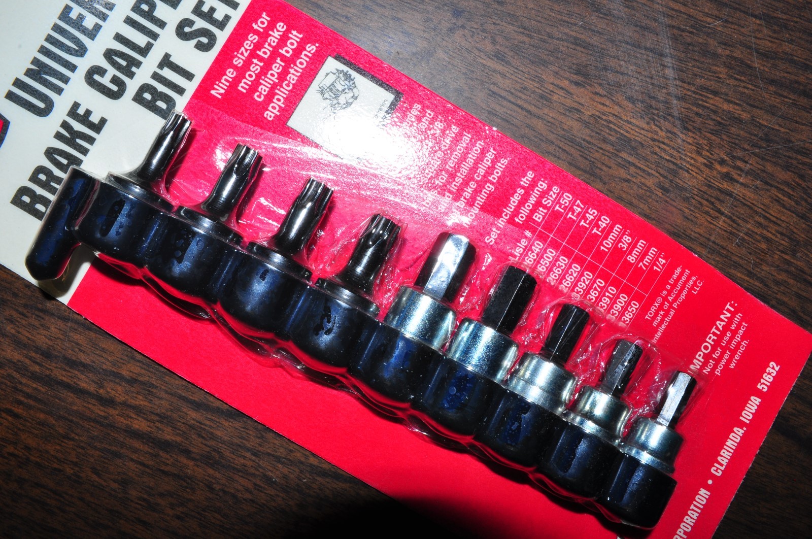 caliper mounting bolts. Includes the following sizes: T-40, T-45, T-47, T-50,