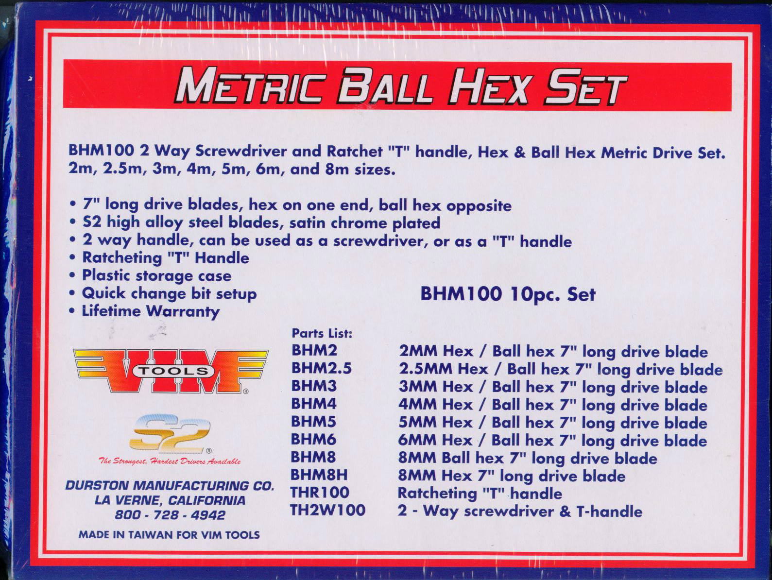 VIM BHM100 10 Pc. Metric Ball and Hex Driver Kit