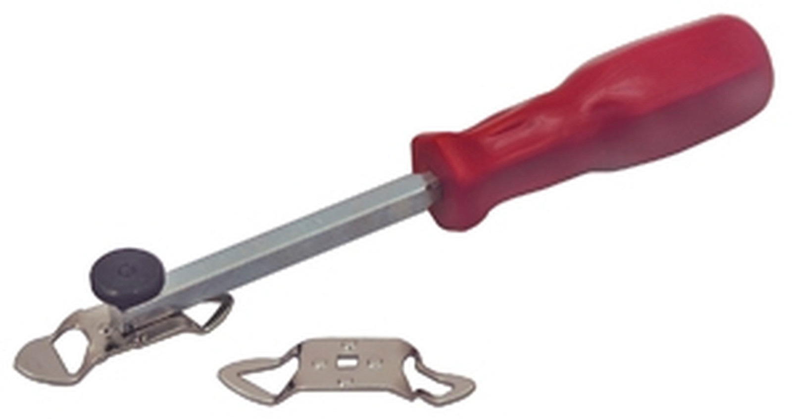 Unique design allows tip to swivel 90 degrees in either direction to work where others won’t. Just select the tip with opening that most closely fits locking strip, and then feed locking strip into eyelet. Tip swivels in 90in either direction.