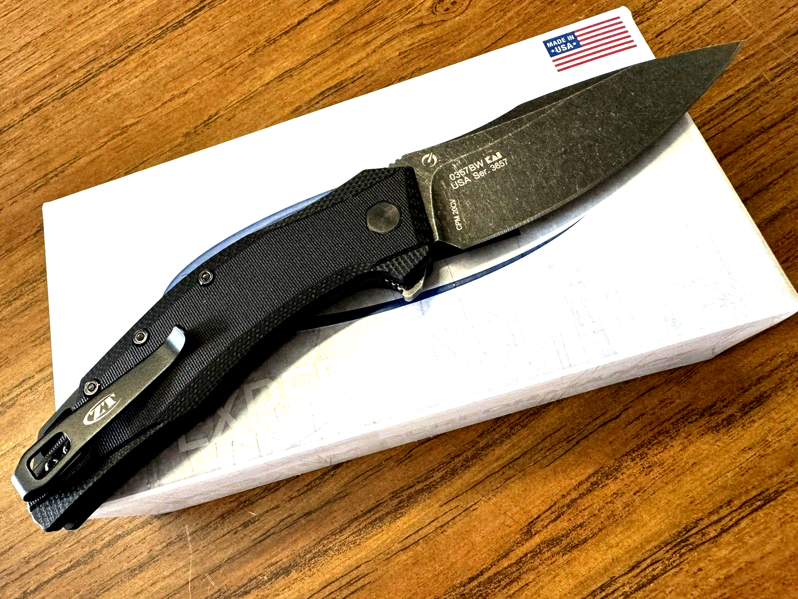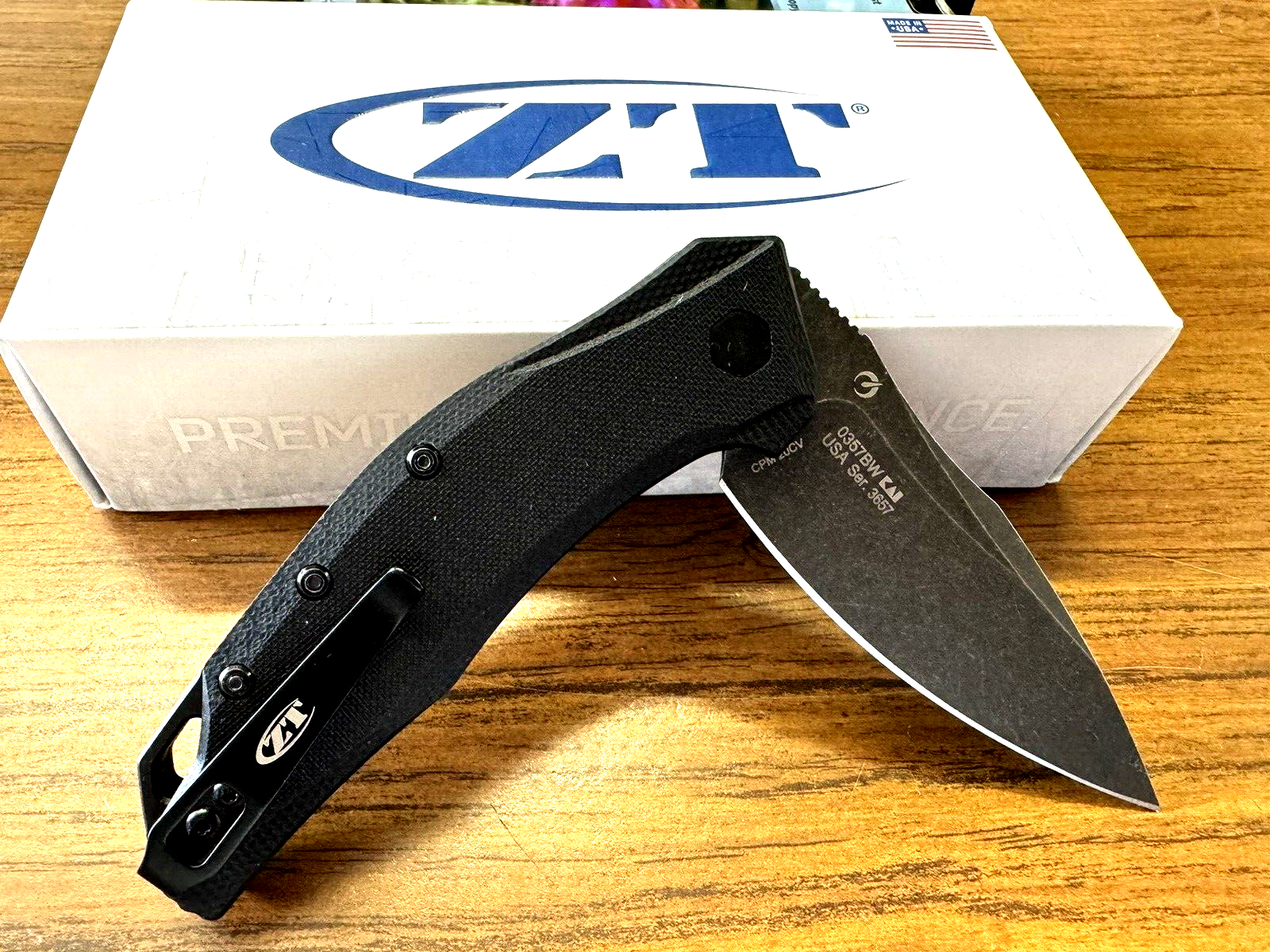 The 0357BW is premium made simple – a working knife built for tough conditions. A 3.25-inch drop point blade gives users plenty of edge for cutting tasks. High-end CPM 20CV blade steel provides reliable edge retention and corrosion resistance. Scratches blend in with the blade’s BlackWash™ finish. Black G10 is machined on both the front and back of the handle. The 0357BW features ZT’s assisted opening system. Simply pull back on the flipper to easily open the knife every time. The blade locks into place with a rock-solid liner lock. A reversible deep-carry pocket clip allows for ambidextrous carry in the tip-up position. All of these features are precision built in ZT’s Tualatin, Oregon USA factory. Whether you’re just starting your ZT journey, or are looking to add to your collection, count on the 0357BW to get the job done.